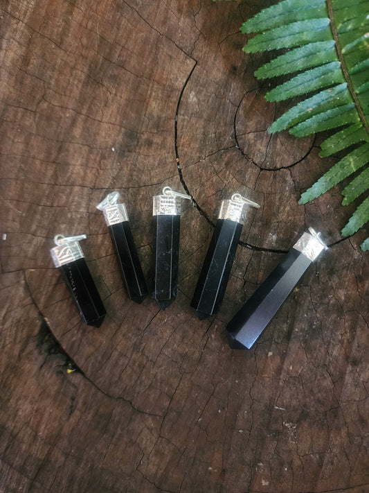 Black Obsidian Crystal Pendant Necklace - Hexagon