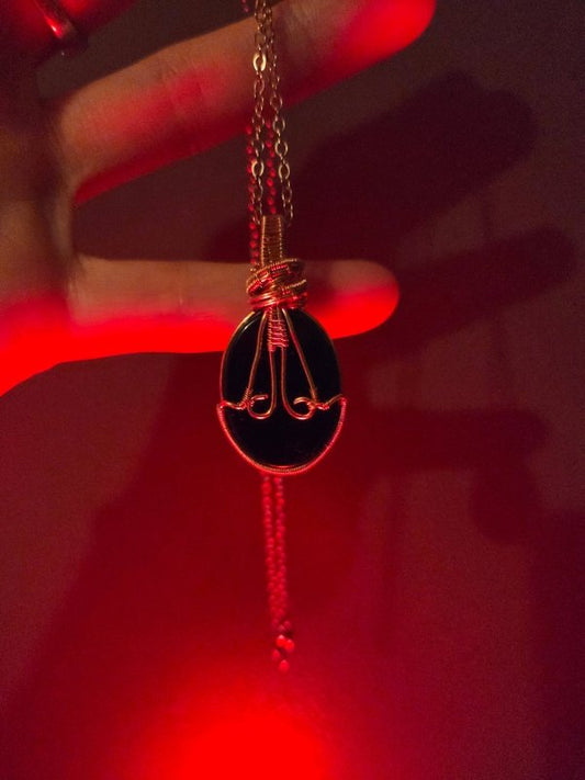 Black Obsidian Copper Wire Wrapped Pendant Necklace