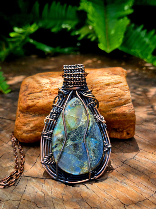 Labradorite Gemstone Copper Wire Wrapped Handmade Pendant Necklace
