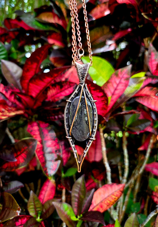 Black Tourmaline Crystal Copper Wire Wrapped Handmade Pendant Necklace