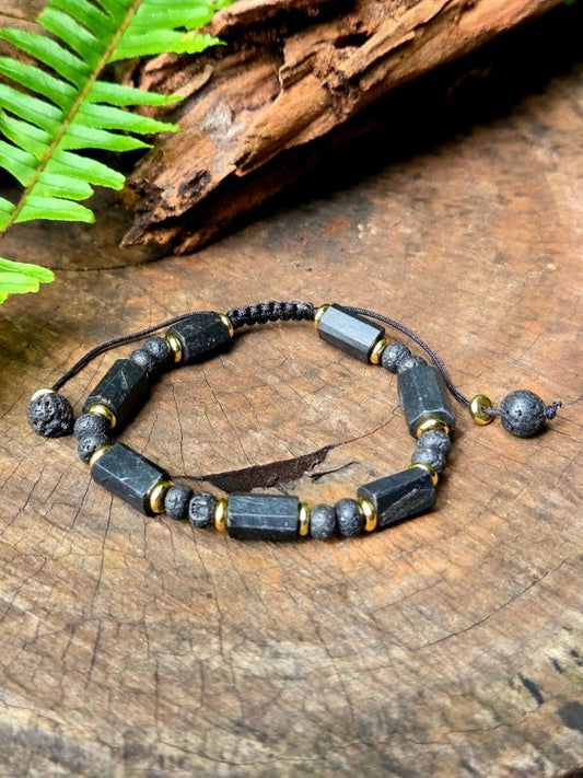 Black Tourmaline & Lava Bead Bracelet - Adjustable