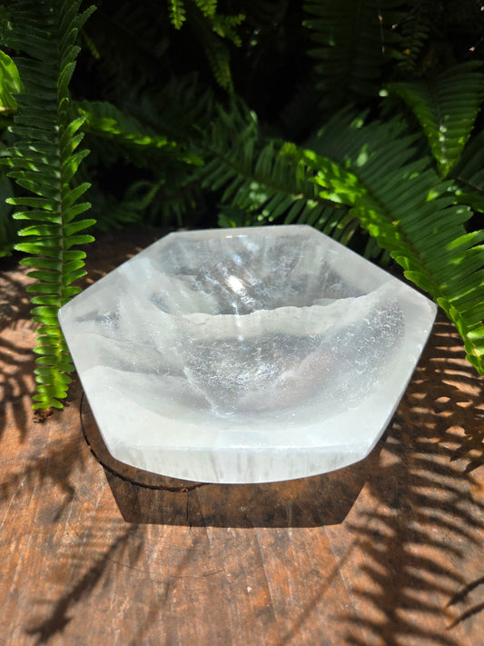 Selenite Crystal Bowl Hexagon - 12cm - Cleansing & Charging Bowl
