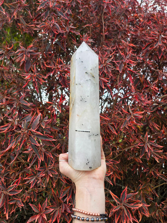 Large Black Tourmaline in Quartz Crystal Tower Point 28cm