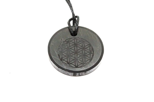 Shungite Pendant Necklace - Flower of Life - EMF Protection