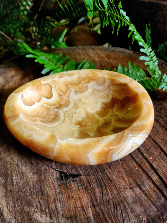 Large Orange Calcite Crystal Plate/Bowl Carving 16cm