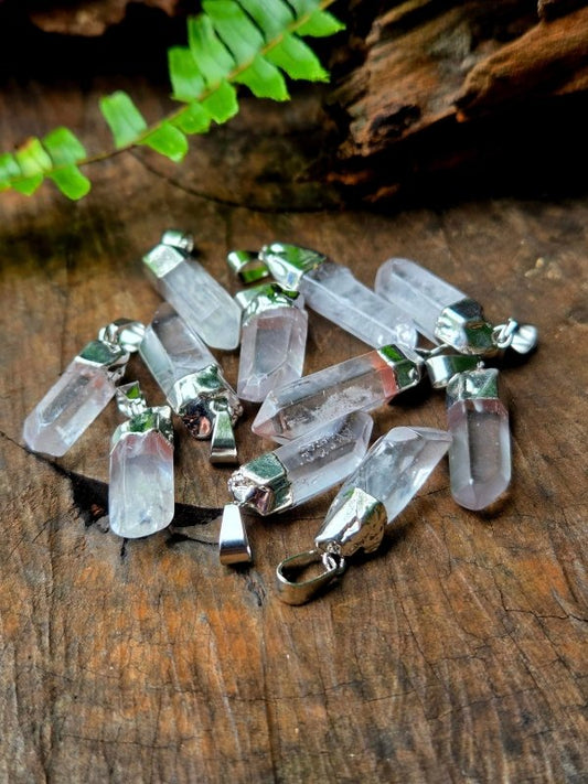Clear Quartz Double Point Octahedron Silver Pendant Necklace