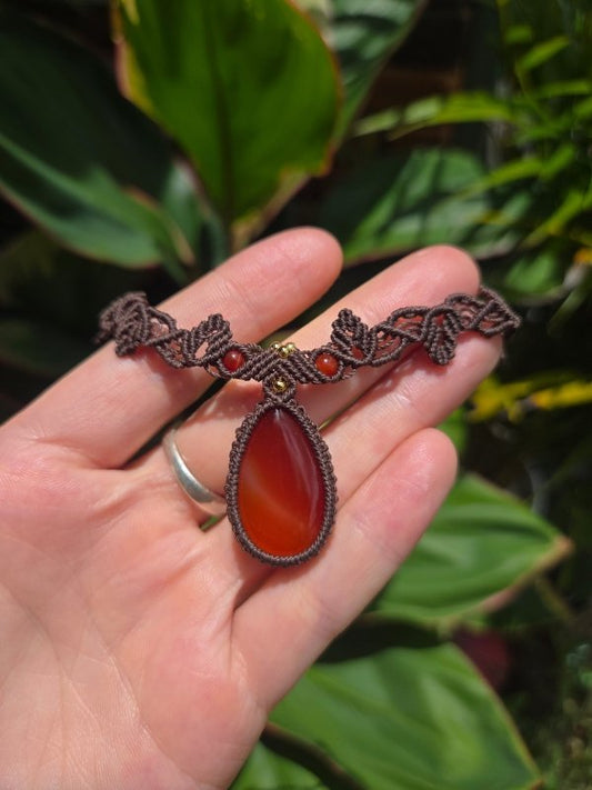 Handmade Red Agate Crystal Macrame Necklace / Choker - Adjustable