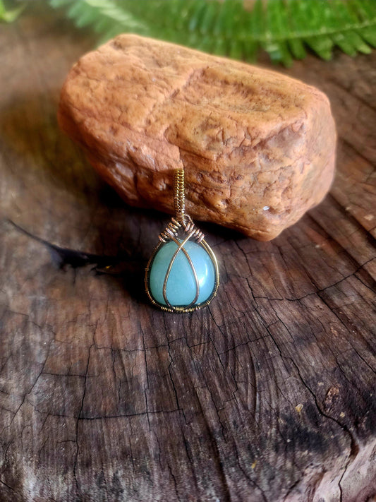 Green Aventurine Copper Wire Wrapped Handmade Pendant Bronze