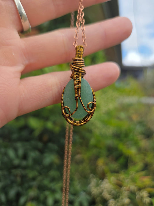 Green Aventurine Crystal Copper Wire Wrapped Handmade Pendant Necklace