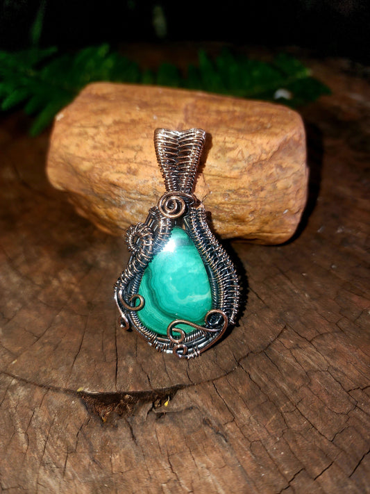 Malachite Copper Wire Wrapped Handmade Pendant