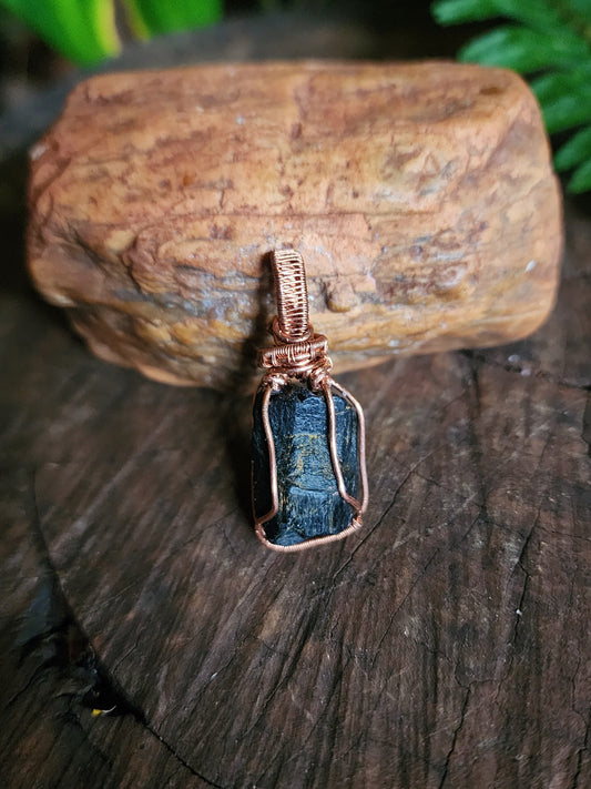 Raw Black Tourmaline Copper Wire Wrapped Handmade Pendant