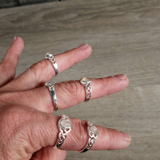 Rose Quartz Gemstone Ring 925 Sterling Silver - Double Trinity Celtic