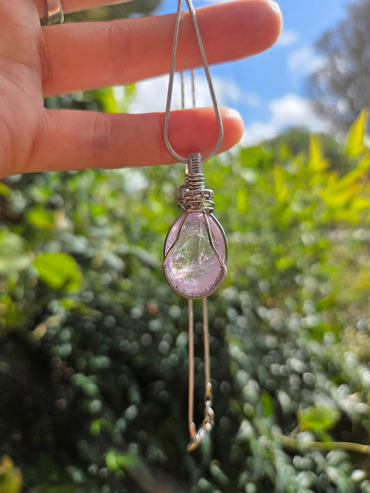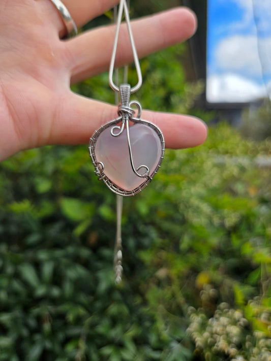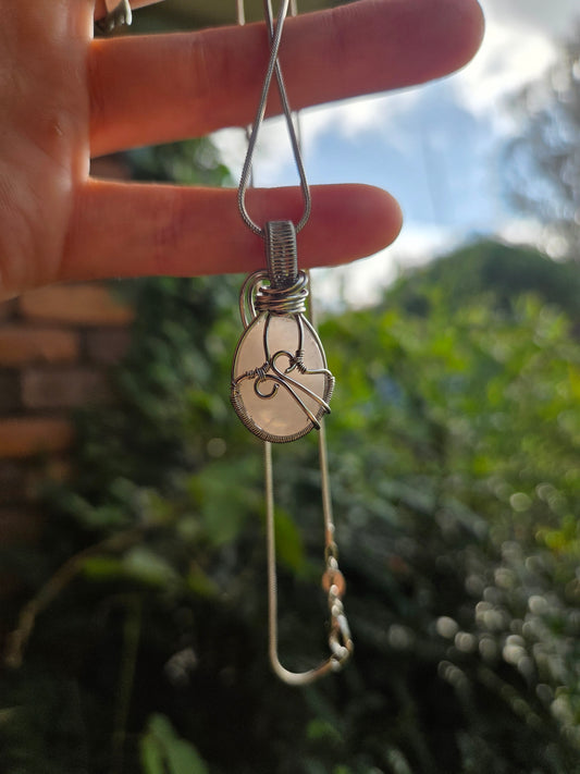 Rose Quartz Silver Wire Wrapped Pendant Necklace