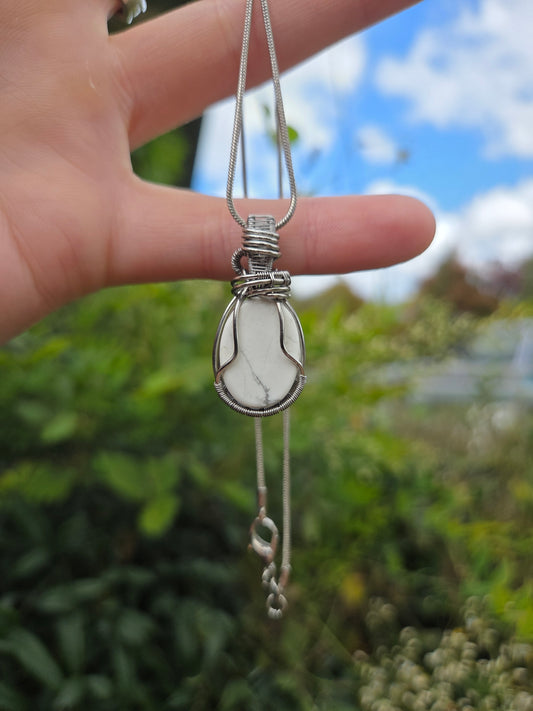 Howlite Silver Wire Wrapped Pendant Necklace