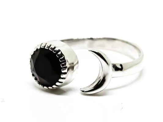 Black Onyx Gemstone Ring 925 Sterling Silver - Sun Moon - Adjustable