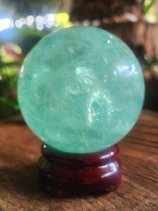 Large Green Fluorite Crystal Sphere 7.5cm High Quality