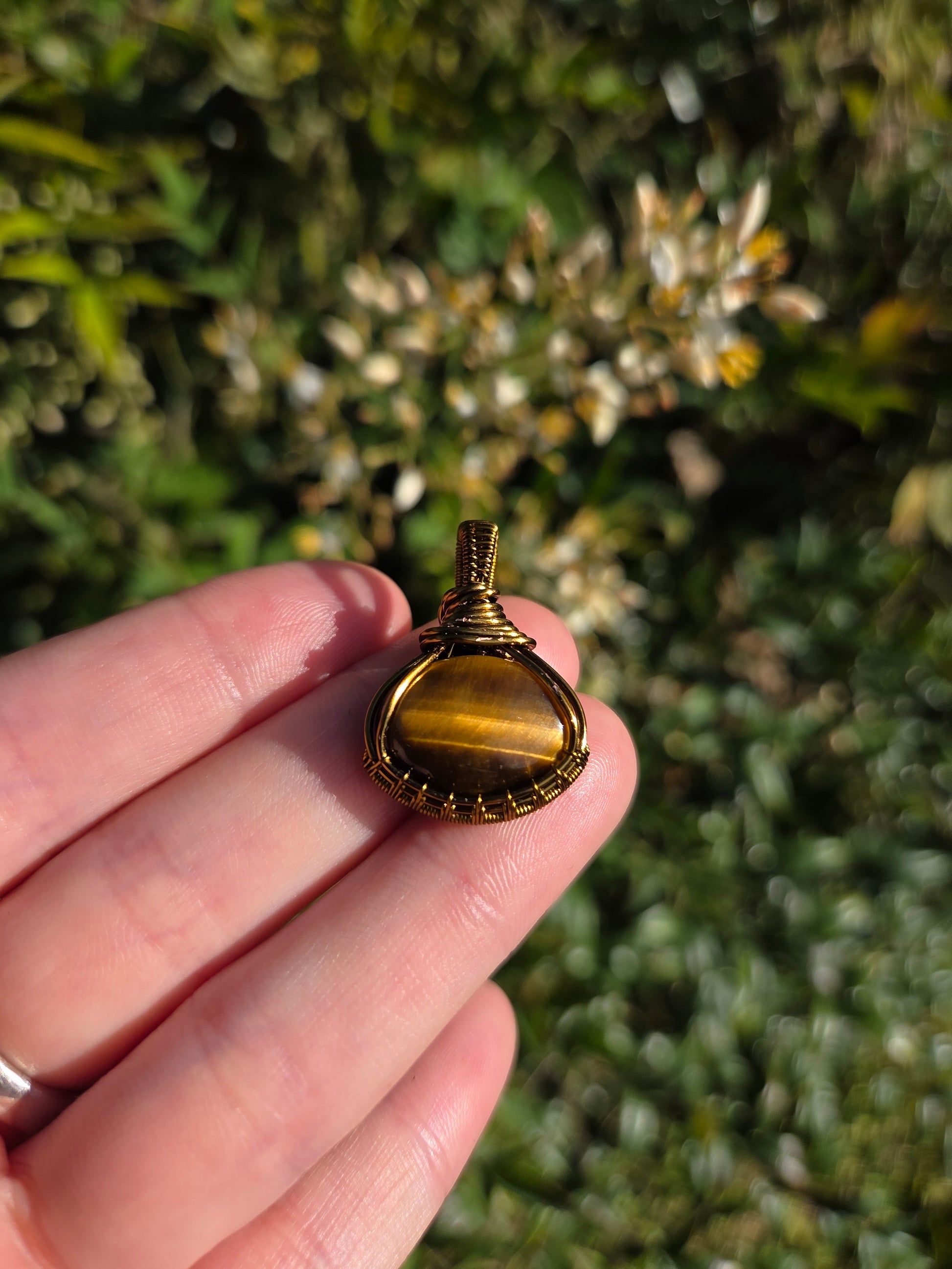Tigers Eye Bronze Copper Wire Wrapped Handmade Pendant Necklace
